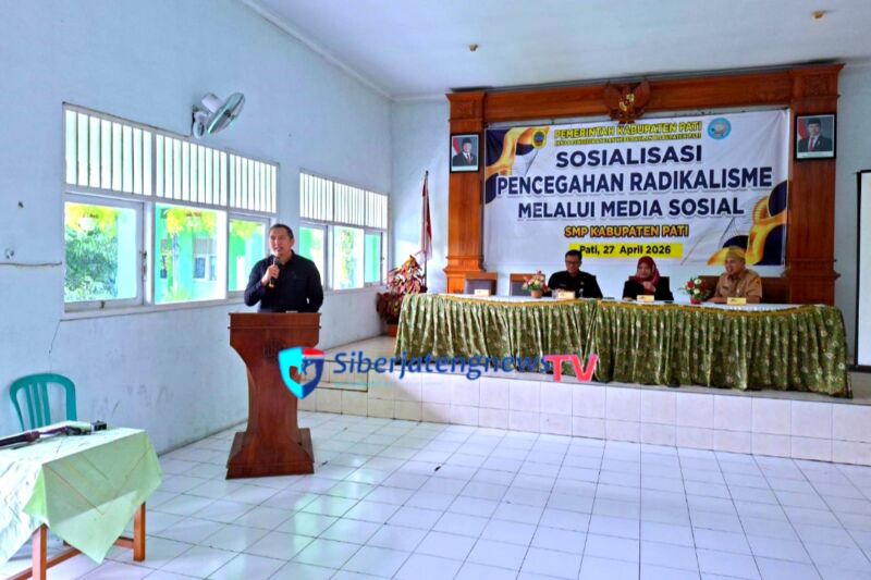 PATI, _Siberjatengnewstv 27 April 2026 – Bertempat di Aula SMP Negeri 4 Pati, dilaksanakan kegiatan Sosialisasi Pencegahan Radikalisme Melalui Media Sosial, Senin (27/4) pagi. Kegiatan ini dihadiri oleh seluruh Kepala SMP Negeri dan Swasta se-Kabupaten Pati.