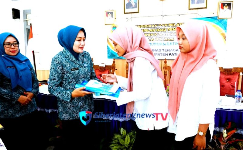Pati –Siberjatengnewstv//_Plt. Ketua Tim Penggerak PKK Kabupaten Pati, Dwi Risma Ardhi Chandra, menghadiri pembukaan kegiatan pendidikan dan pelatihan keterampilan bagi pencari kerja. Kegiatan digelar di Aula Kantor Kecamatan Jakenan, Selasa, dua puluh delapan April dua ribu dua enam.
