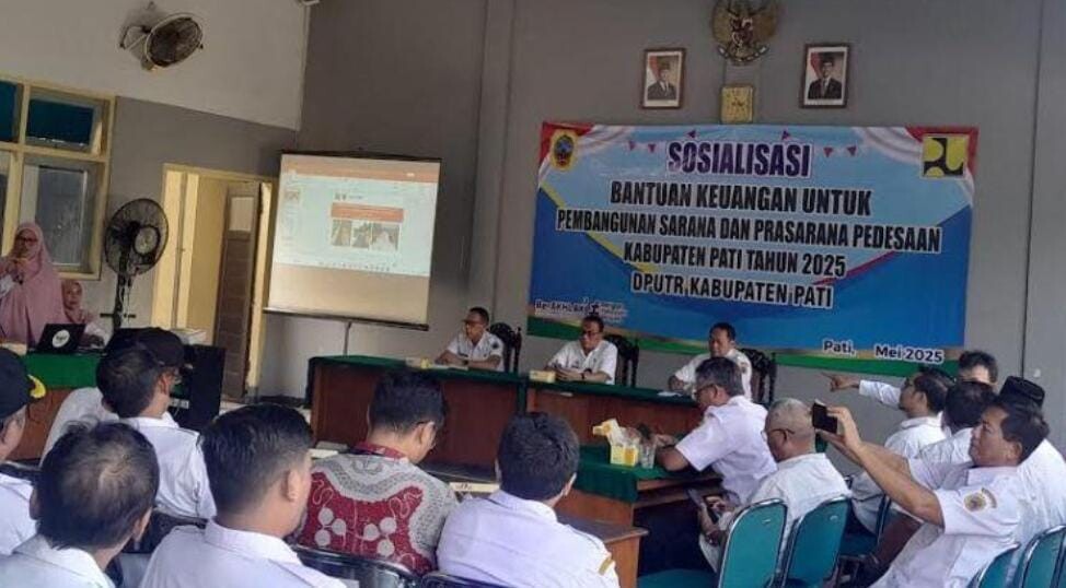 PATI, Siberjatengnews.com – Pemerintah Kabupaten (Pemkab) Pati pada tahun ini menggelontorkan Bantuan Keuangan (Bankeu) Sarana dan Prasarana Perdesaan sebesar Rp 44,35 miliar. Agar Bankeu ini bisa berjalan sebagaimana mestinya, Pemkab Pati melalui Dinas Pekerjaan Umum dan Penataan Ruang (DPUTR) Kabupaten Pati menggelar sosialisasi terkait Bankeu Sarana dan Prasana Perdesaan bertempat di aula DPUTR Kabupaten Pati pada Rabu (21/5/2025).