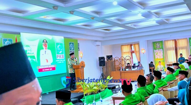 PATI –Siberjatengnewstv _DPC Partai Kebangkitan Bangsa (PKB) Kabupaten Pati menggelar Musyawarah Cabang (Muscab) di Aula Hotel Gritary, Jalan Syeh Jangkung Nomor 139, Kelurahan Pati Kidul, Kecamatan Pati, Kamis, enam belas April dua ribu dua enam. Kegiatan berlangsung pukul 09.50 WIB hingga 13.30 WIB dengan penanggung jawab Ketua DPC Pati, H. N.M. Syaiful Rijal, M.Pd.