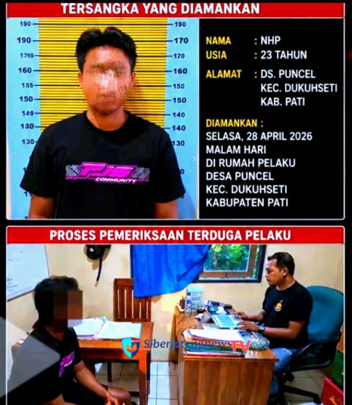 Pati – Siberjatengnewstv//_Dukuhseti dibantu Tim Resmob Satreskrim Polresta Pati berhasil mengamankan satu pelaku pengeroyokan yang terjadi di wilayah Dukuhseti. Pelaku berinisial NHP (23) ditangkap di rumahnya di Desa Puncel, Selasa malam (28/4/2026). Sementara itu, rekan pelaku lainnya masih dalam pengejaran dan ditetapkan sebagai Daftar Pencarian Orang (DPO).