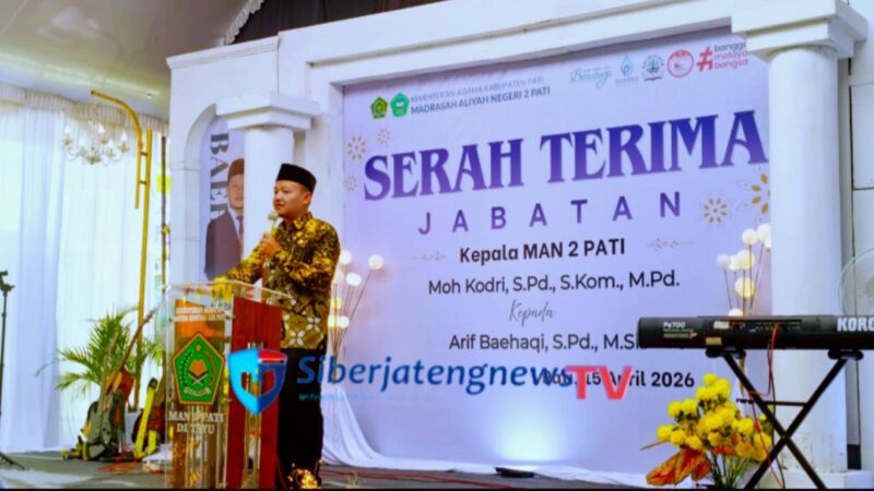 TAYU – Siberjatengnewstv_Telah dilaksanakan kegiatan Serah Terima Jabatan (Sertijab) Kepala Sekolah MAN 2 Pati yang berlangsung di Aula Sekolah MAN 2 Pati, Desa Tayu Wetan, Kecamatan Tayu, Rabu, lima belas April dua ribu dua lima. Kegiatan berlangsung mulai pukul 13.00 WIB s.d 15.30 WIB dan dihadiri oleh sekitar 100 orang peserta.