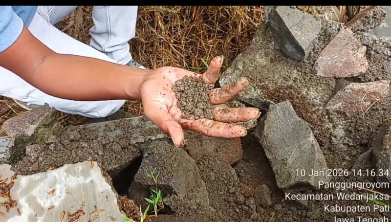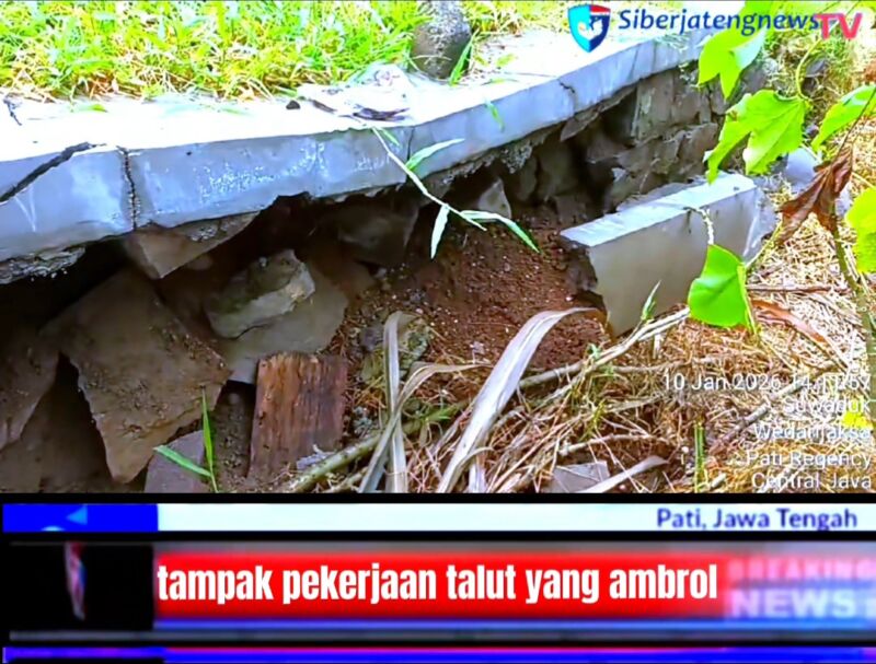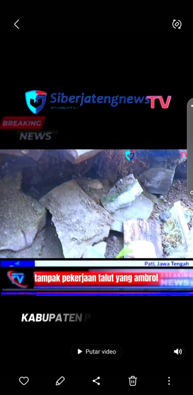 PATI-Siberjatengnews.tv_ Di duga proyek siluman tanpa papan proyek dan prasasti Talud di sepanjang jalan persawahan desa panggungroyom kecamatan wedarijaksa, Kabupaten pati ambrol dan menuai sorotan publik.