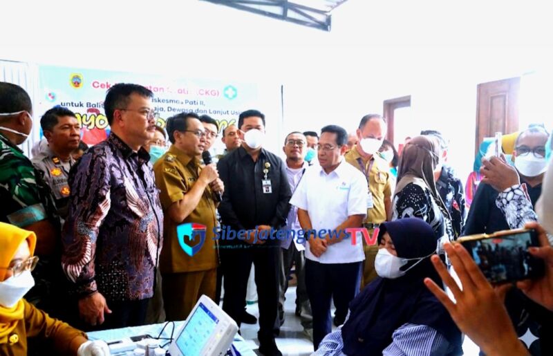 PATI_SiberjatengnewsTV_21 April 2026 — Pemerintah Kabupaten Pati bersama Kementerian Kesehatan RI mempercepat penanganan tuberkulosis (TBC) melalui cek kesehatan gratis di 120 titik, menyusul temuan 2.658 kasus pada tahun sebelumnya, dalam kunjungan Wakil Menteri Kesehatan RI, dr. Benjamin Paulus Octavianus di Balai Desa Kutoharjo, Selasa (21/4), guna menekan penularan yang berisiko menyebar ke keluarga pasien.
